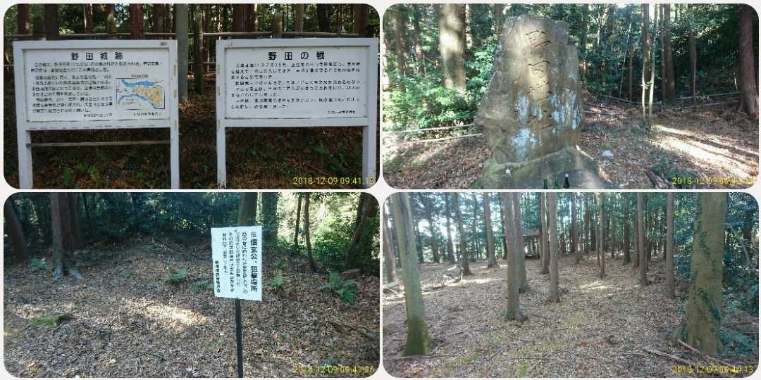 (2020-08-01) 場所が分からずとりあえず野田城駅にナビをセット。なにげにナビを見ていると野田城跡の文字を発見。なんとかたどり着けました。城跡には野田城神社があり登城口に鳥居があります。 |