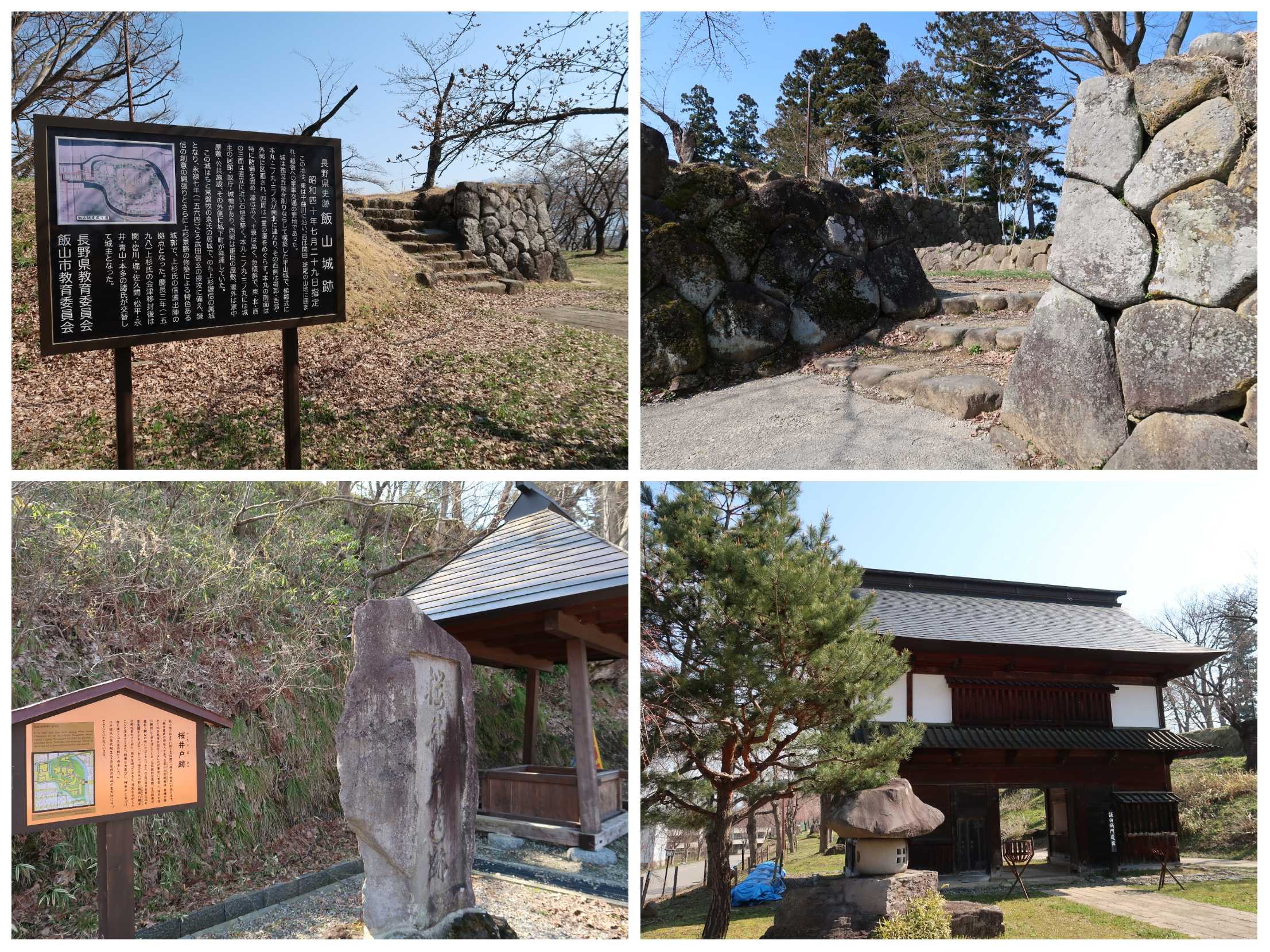 (2021-05-13) 城跡は葵神社と飯山城址公園になってます。土塁や復元された門、桝形虎口の石垣などチェックしました。静かでくつろげる公園です。 |