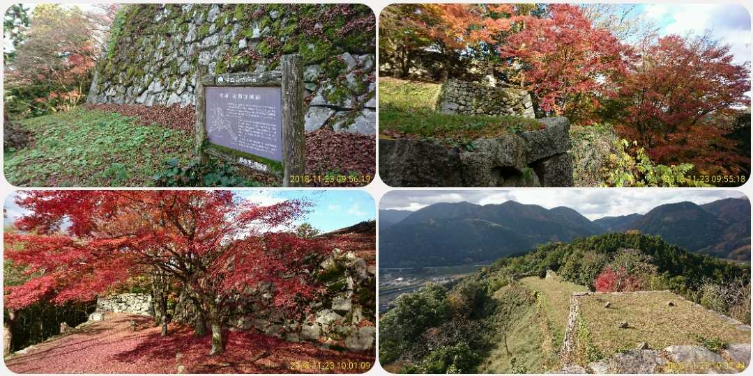 (2018-11-23) リフトで中腹まで登り、そこから頂上まで徒歩15分程度。ここは天空の城で石垣がカッコ良く、頂上からの景観も見事です。ギリギリ紅葉も間に合いました(^^) SLやまぐち号の姿も拝めるとの事なんで、時間を合わせて登ってみるのもオツですね♪ |