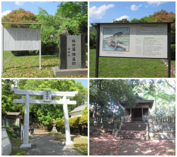 林田陣屋 (播磨国) 2025-05-04 GW休みの遠征。播但道・市川SAを一般道からSAPA活・昼食後に訪問。聖ヶ丘公園になっています。中学校横に無料駐車場ありました。階段上がっていくと、石碑や案内説明板、武部神社が建ってました。石垣の遺構が残ってたかなぁ。15分位の見学時間でした。この後、たつの市に蓋活に向いました。 |