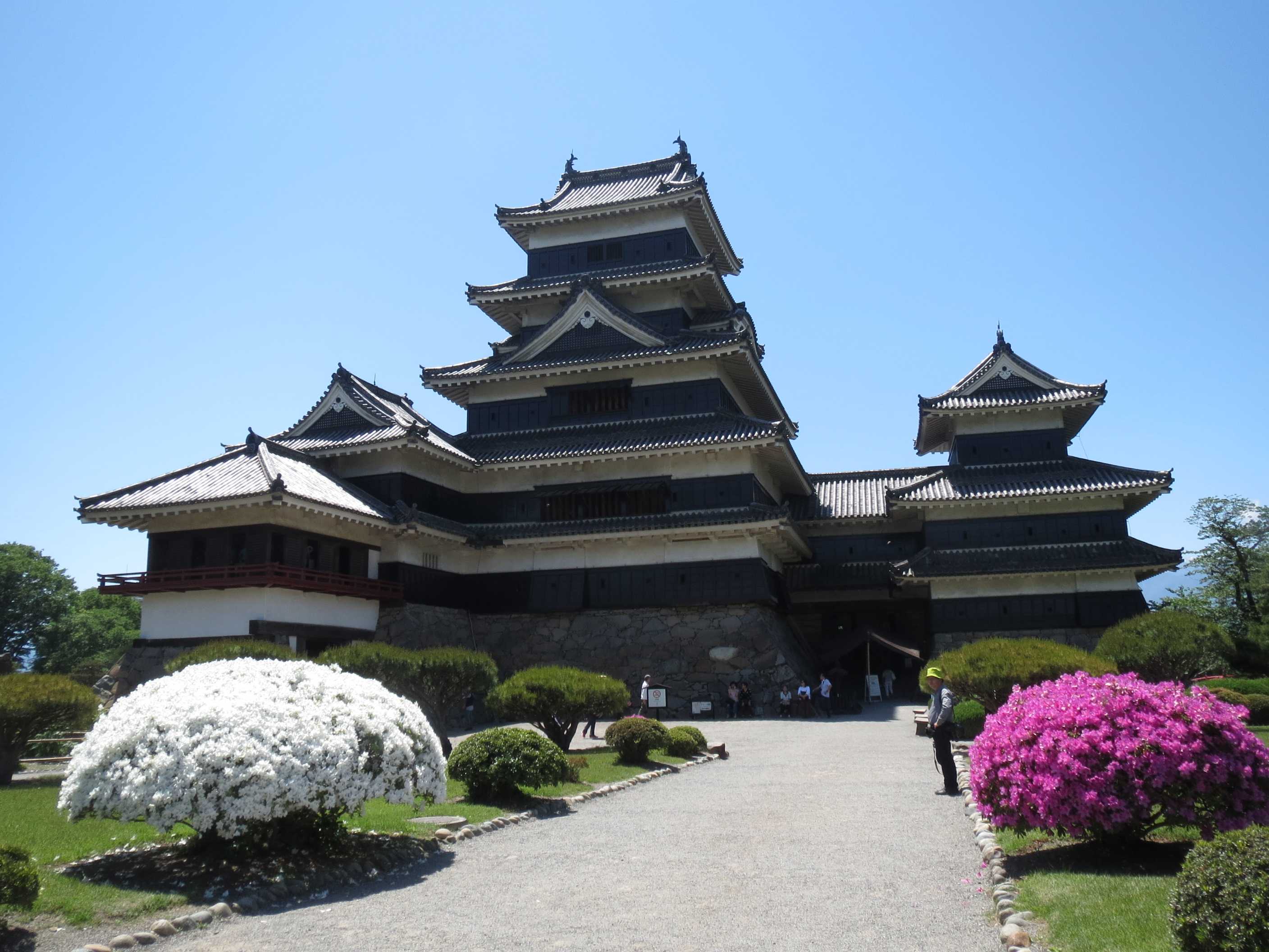 松本城 (信濃国) 2016-05-13 47年ぶりの再訪、外国人が多く目立つ、ツツジが満開で相変わらず壮大で美しい。 |