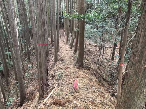・23/01/19 :加太駅近くの神福寺で石碑と古い案内板を確認。web検索で南西側からの登城路があるとのことで、車で数百m移動し、民家脇の大きな石碑の裏手の畦道を徒歩で入っていきます(駐車場なし)。程なくして、遮断機なしの線路(画像右下)を渡った後は山道。途中の案内がほとんどなく、道を間違いかけて戻ったりしましたが、20分ほどで本丸跡へ。眺望はなし。石垣と土塁が残っていました。(ルピナスさん)